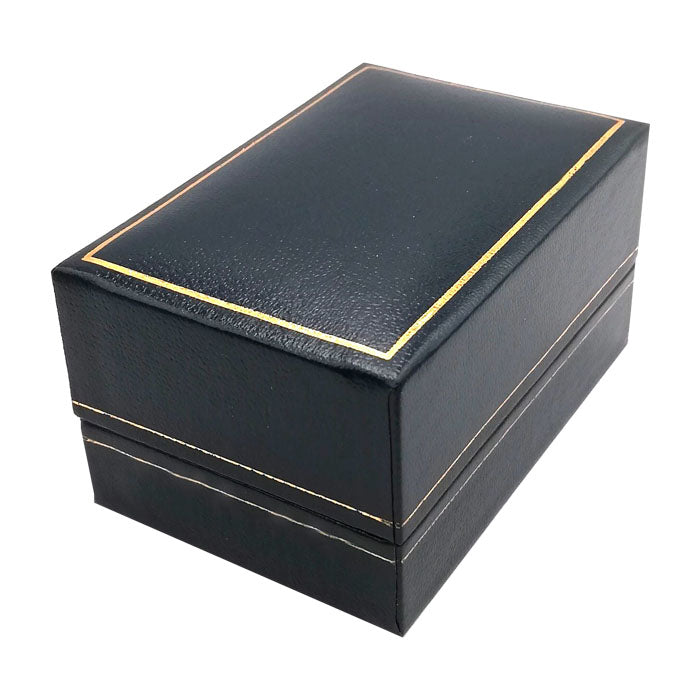 Een verfijnd lederlook sieradendoosje voorzien van een gouden bies. De luxe zachte velours binnenbekleding beschermt het juweel. Deze tijdloze klassieker behoudt zijn aantrekkingskracht dankzij zijn elegante uitstraling en voegt een vleugje distinctie toe aan het sieraad, waardoor het een waardevolle uitstraling krijgt.